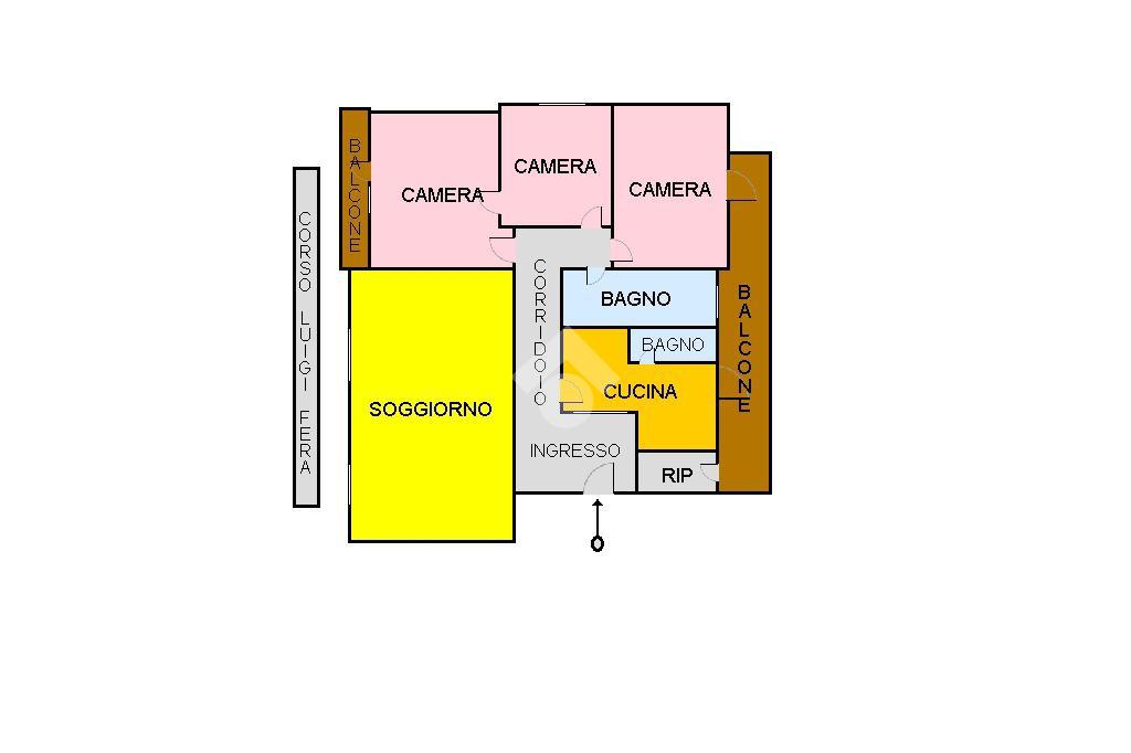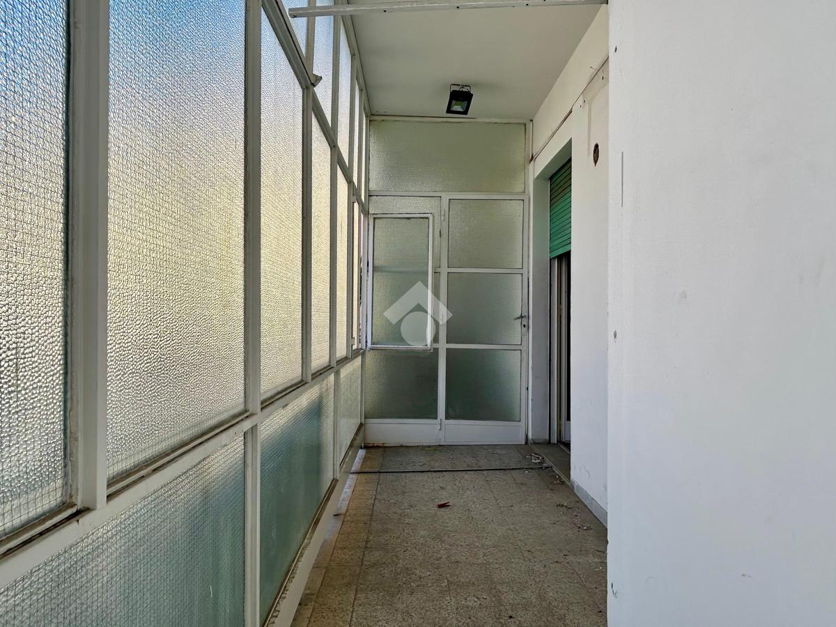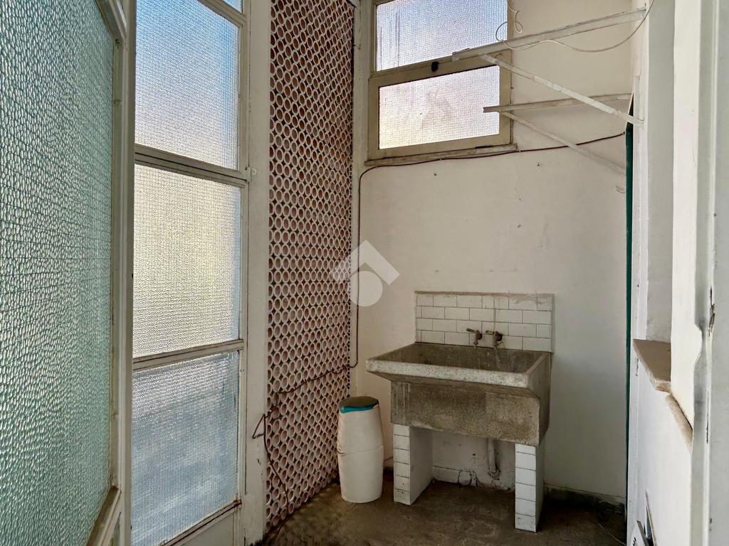 L'appartamento ha una divisione interna ottimale, sulla sinistra la vista si apre su un ampio salone e con affaccio sulla strada principale. Di fronte troviamo la cucina servita da un comodo balcone terrazzato, esposto ad ovest. Qui troviamo una zona adibita a ripostiglio, con lavatoio e uno spazio riservato all'autoclave.