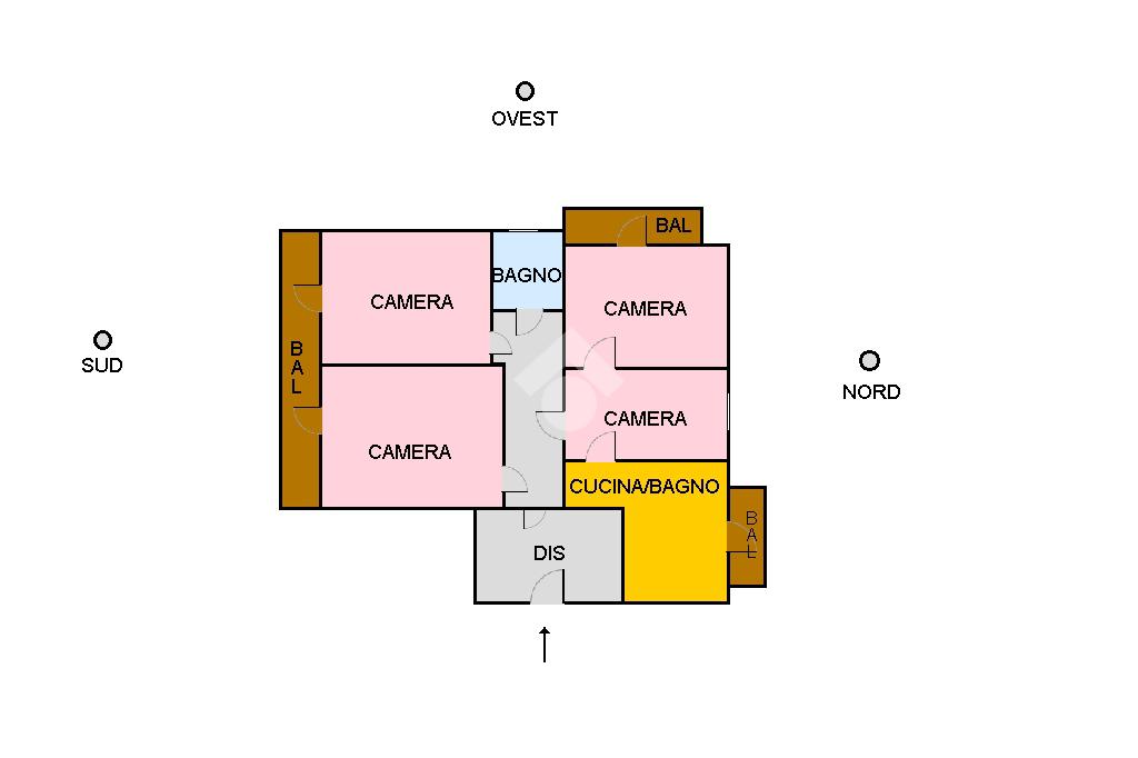 La metratura dell'immobile e la struttura dell'edificio in cemento armato ci permettono di ridistribuire a piacimento tutti gli ambienti della casa.