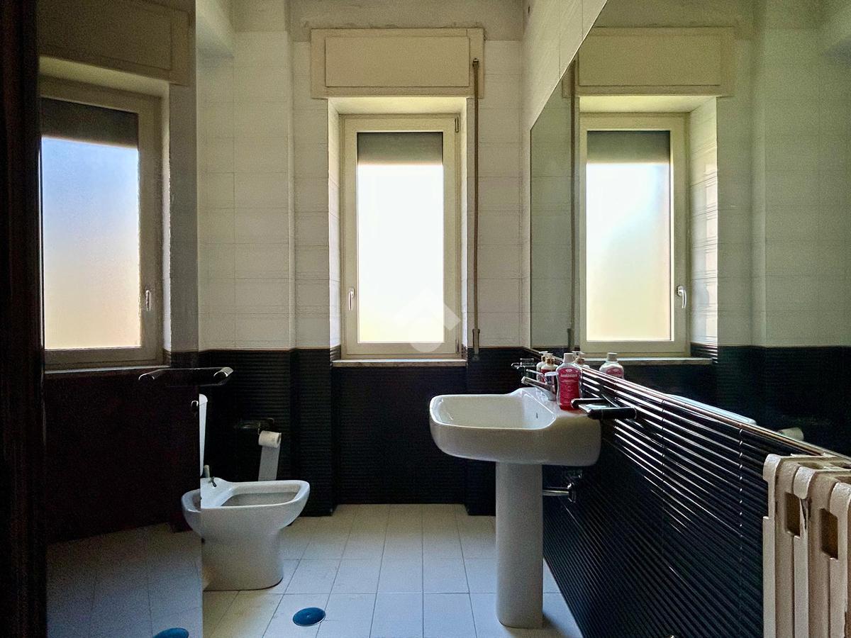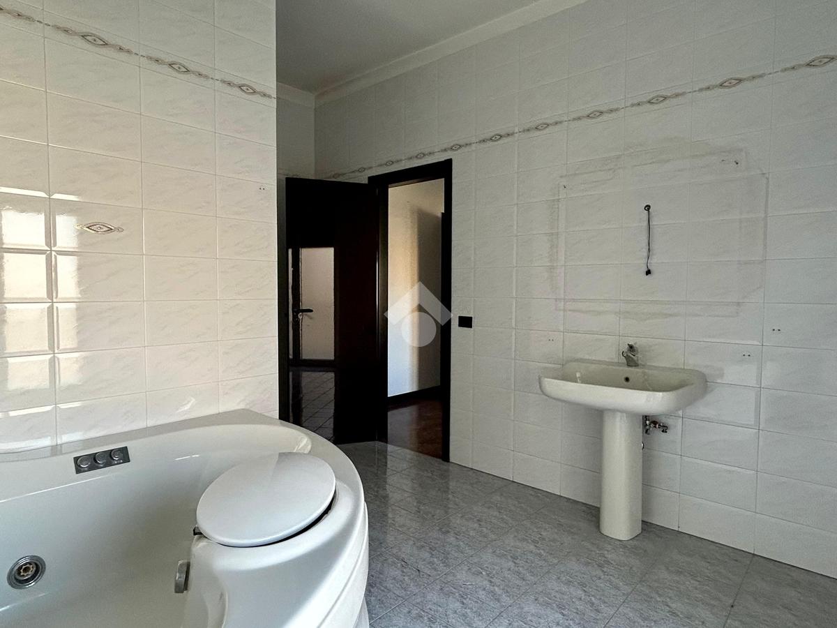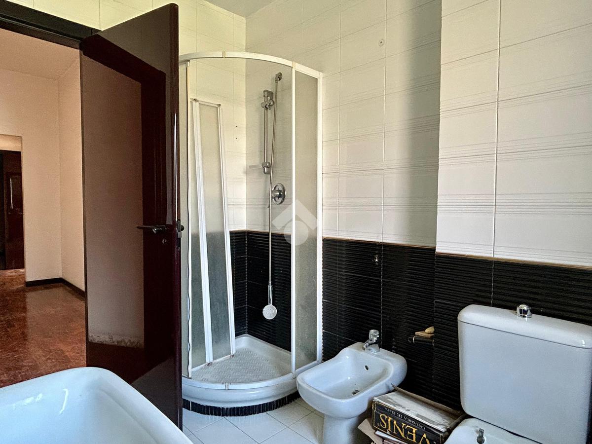 Proseguiamo e sulla destra troviamo la cucina, attualmente ambiente adibito a bagno. La cucina è abitabile e funzionale, servita da un secondo balcone dove poter sistemare i mastelli della spazzatura avendo un'esposizione un po' più interna.