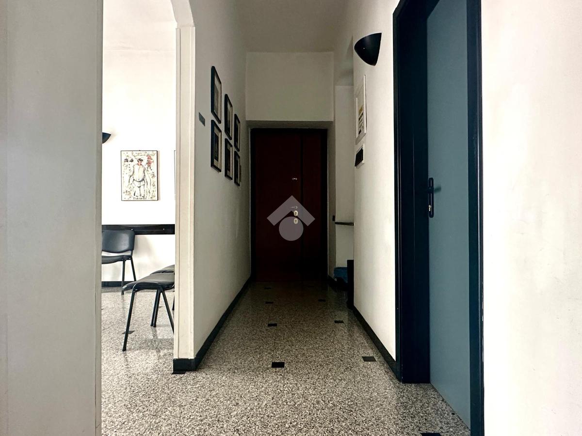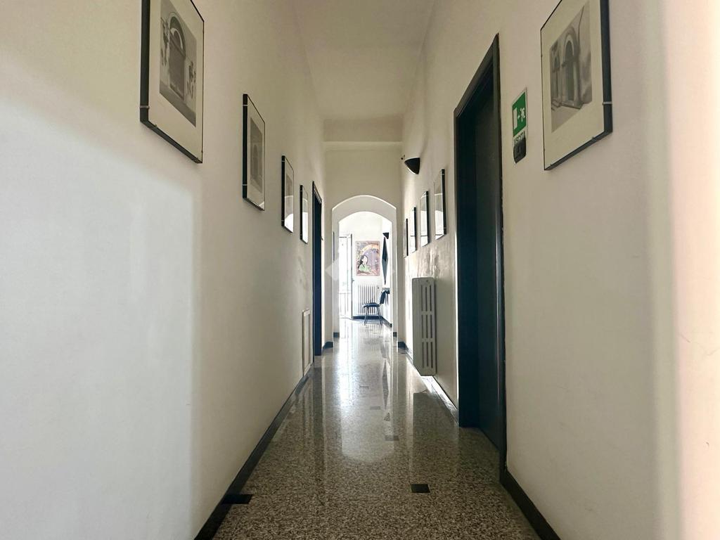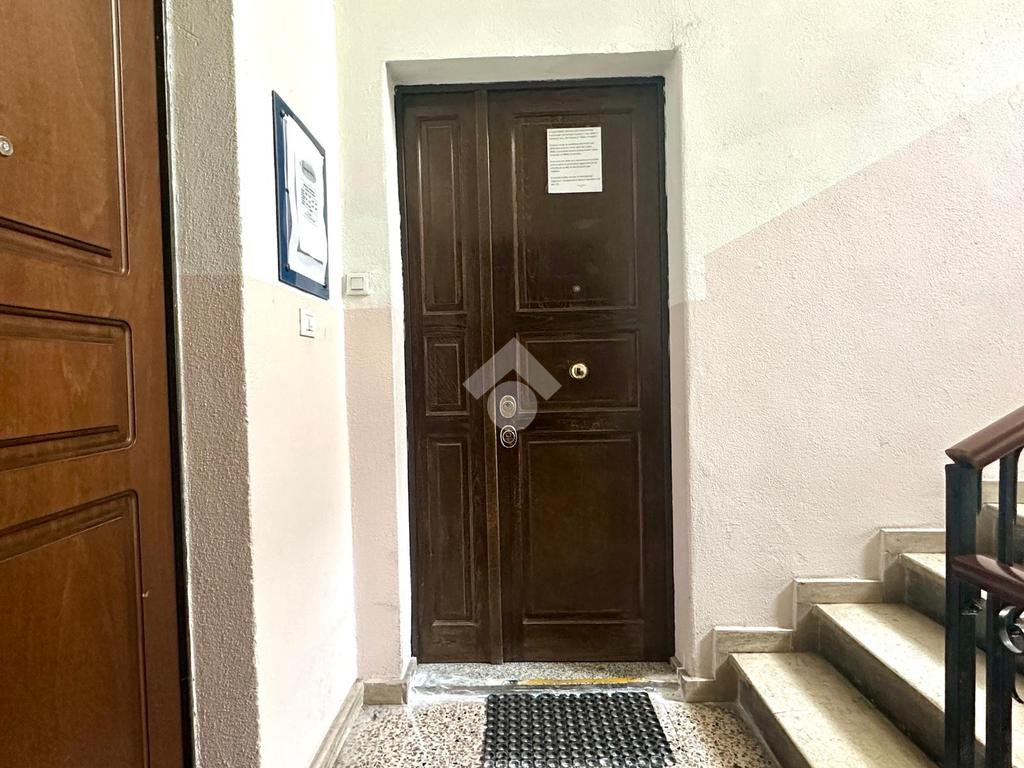 L' androne condominiale ci accoglie e qualche gradino ci guida al piano.