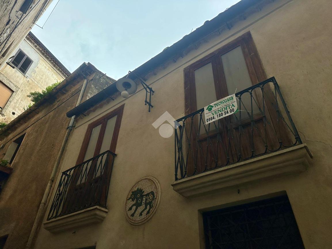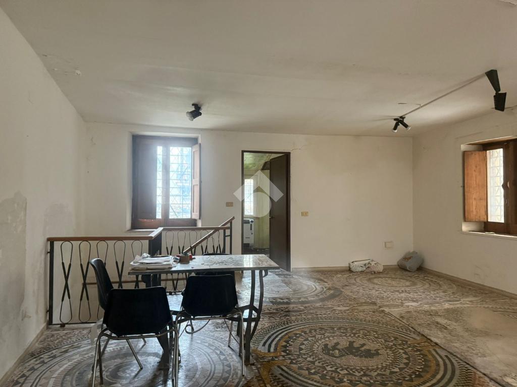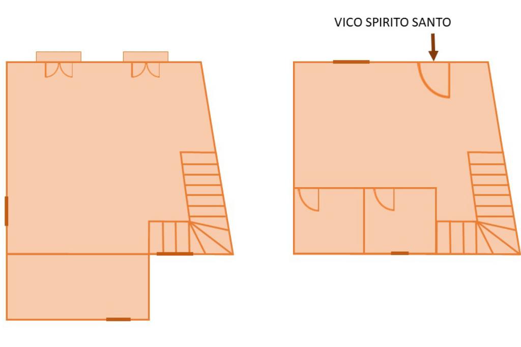 Attraverso la scala interna si raggiunge il primo piano, composto da un ampio locale con pavimento in mosaico interamente realizzato a mano, elemento distintivo dell’immobile. Da questo spazio si accede, tramite due porte-finestre, a due piccoli balconi che affacciano sul vicolo da cui si accede alla proprietà.
