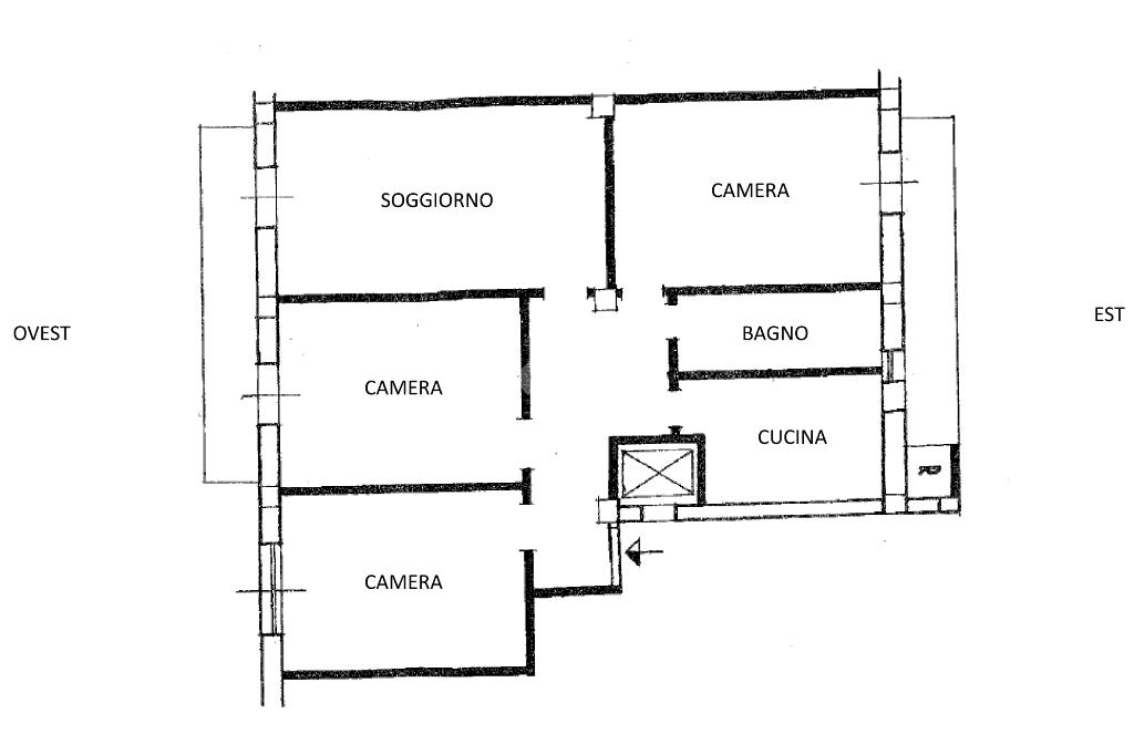 Facciamo ingresso nell'appartamento tramite portoncino e un piccolo disimpegno ci guida nei diversi ambienti della casa. A destra dello stesso troviamo la cucina abitabile con uscita su un primo balcone orientato ad est, arricchito da un comodo ripostiglio con lavabo, da poter adibire a zona lavanderia. La posizione del soggiorno si può scegliere in base alle proprie esigenze, grazie alla disposizione interna ottimale e alla possibilità di ridistribuire gli ambienti. Attualmente è collocato nella stanza più ampia.